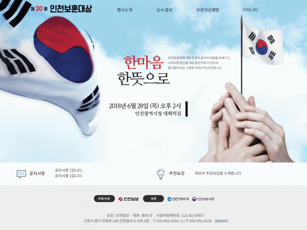 인천보훈대상 페이지 정보 작성자 관리자 댓글 0건 조회 225회 작성일 18-10-04 17:24 목록 본문 . 이전글미래꿈그림그리기대회 18.10.04 다음글한국자치법규연구소 18.10.04 댓글 0 댓글목록 등록된 댓글이 없습니다.